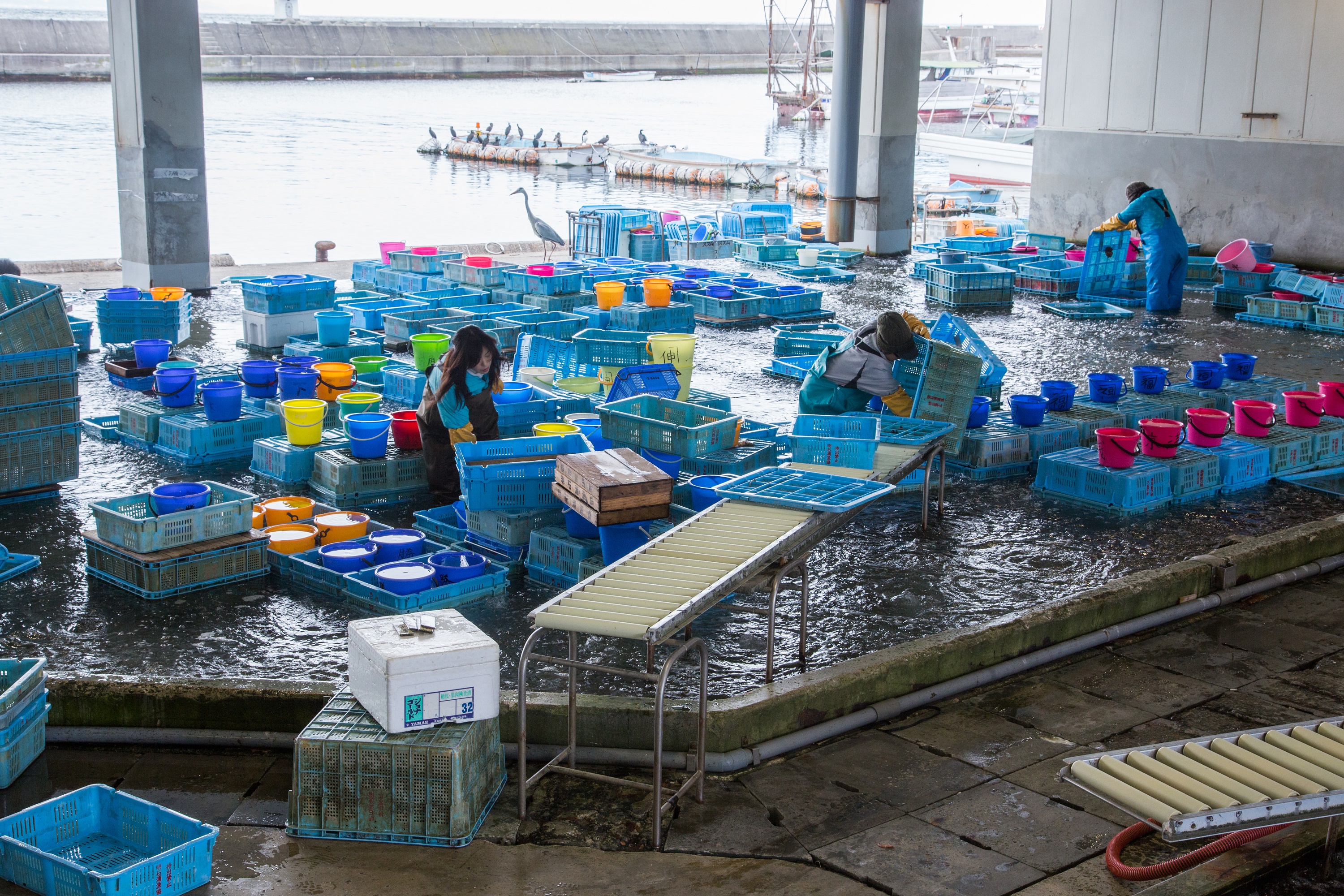 全国的にも珍しい巨大な生け簀施設のある明石浦漁業協同組合において、漁協職員の案内と解説のもと、昼頃から行われる活魚のセリ市と施設を見学いただきます。生きた魚が飛び跳ねながらセリにかけられる様子を仲買人と同じ目線でご覧いただけます。※要予約