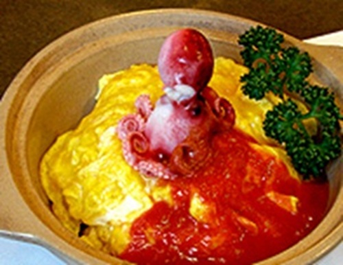 明石といえば“蛸”飯蛸を使ったオムライス。とろ~りふんわり玉子がのっかって、食感もとてもおいしいです。
